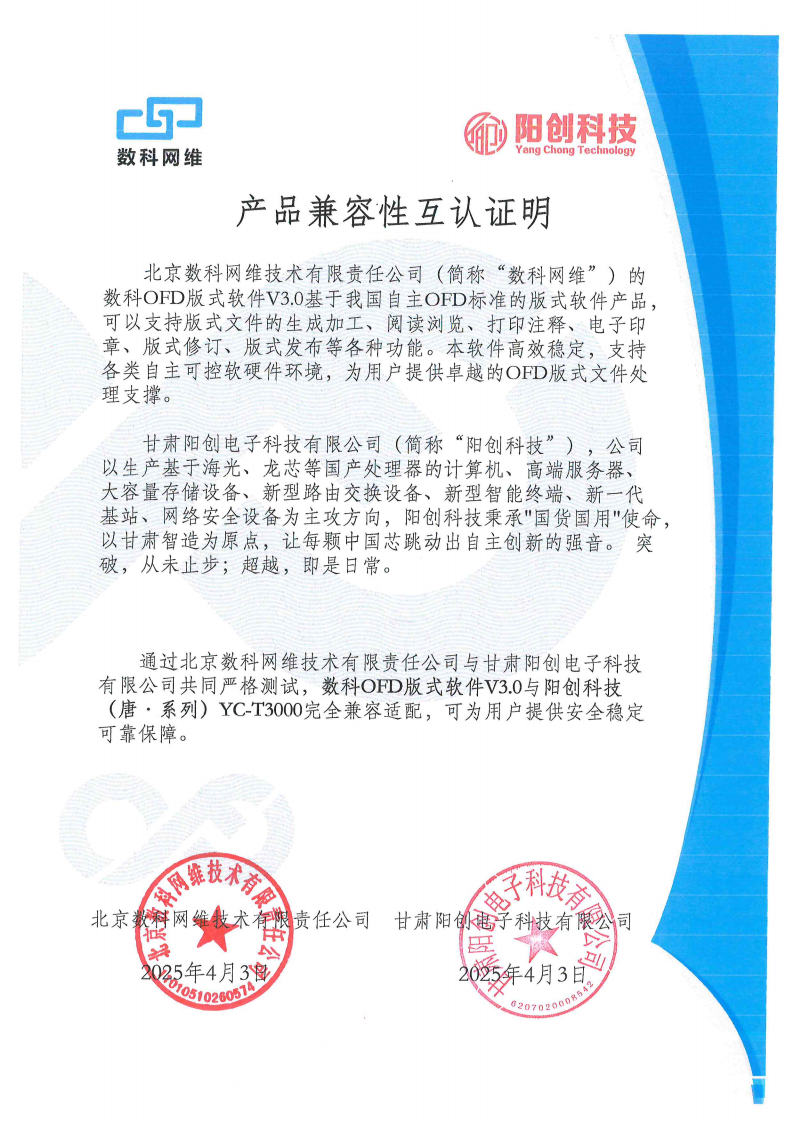 适配认证 永中OFD版式软件V3.0互认证 永中OFD版式软件V3.0互认证 永中Office2024专业版办公软件(Linux版)V12互认证 中孚安全安全保密套件管理系统V1.0中孚密保卫士系统V2.0互认证 数科OFD版式软件V3.0互认证 数科OFD版式软件V3.0互认证 数科OFD版式软件V3.0互认证 北信源计算机终端保密检查系统(笔记本版)V1.0互认证 首页 上一页 下一页 末页